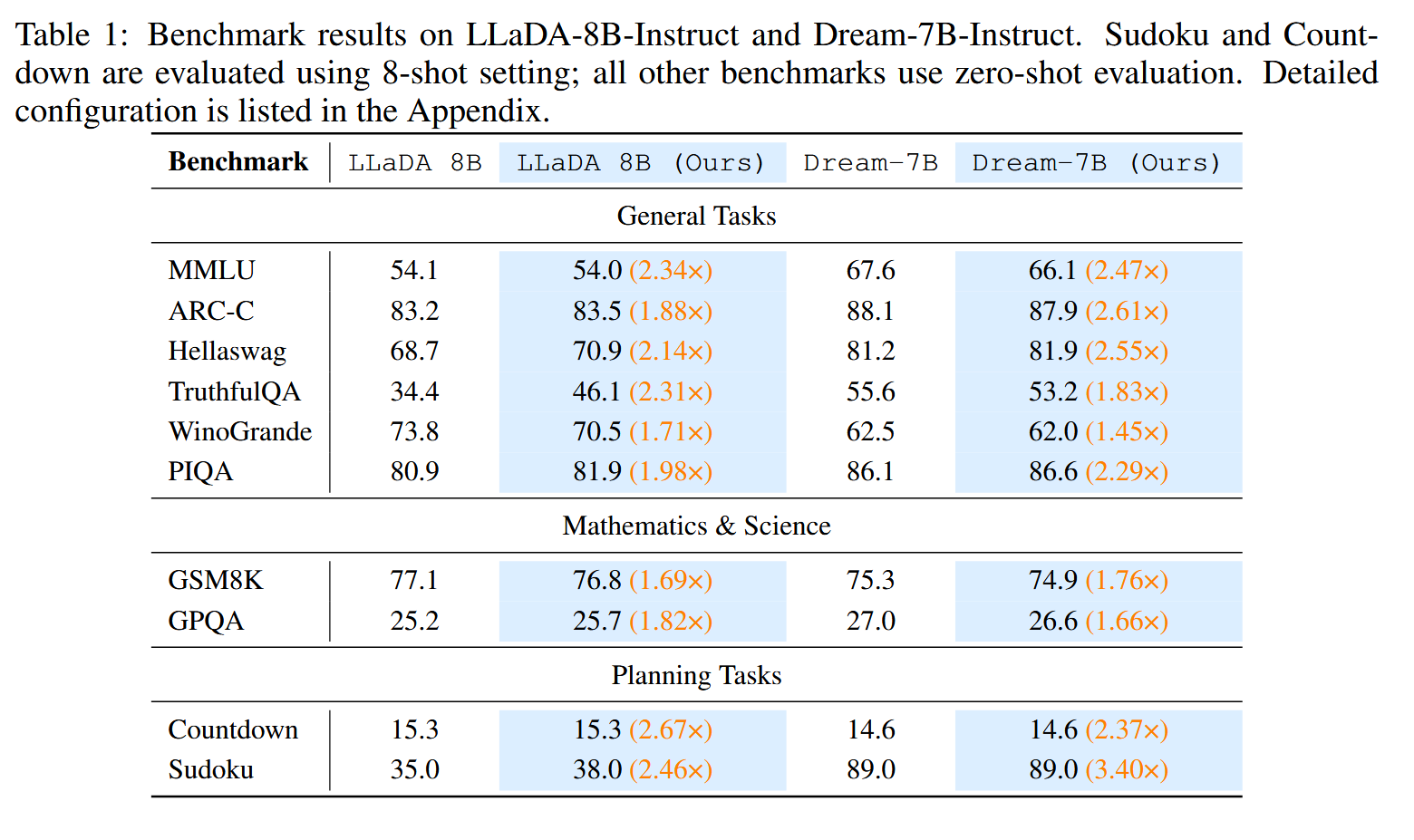 模型: LLaDA-8B、Dream-7B
